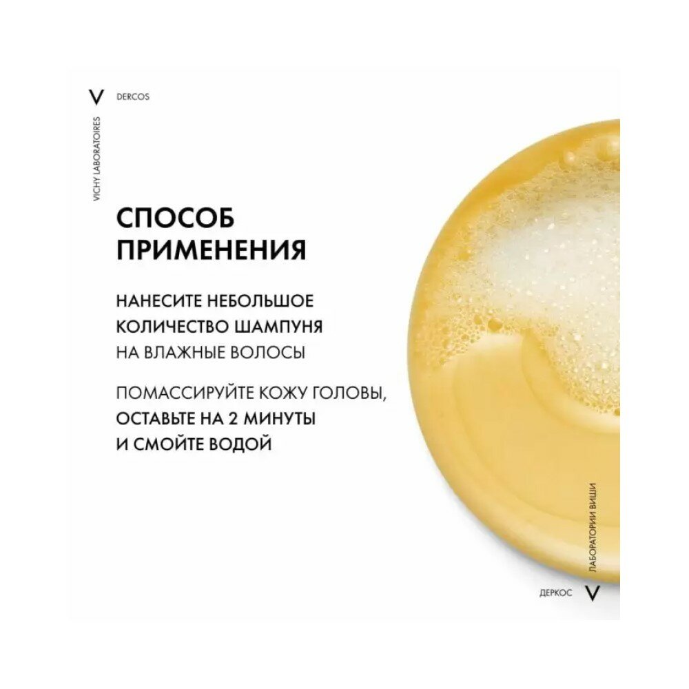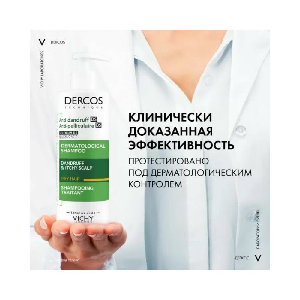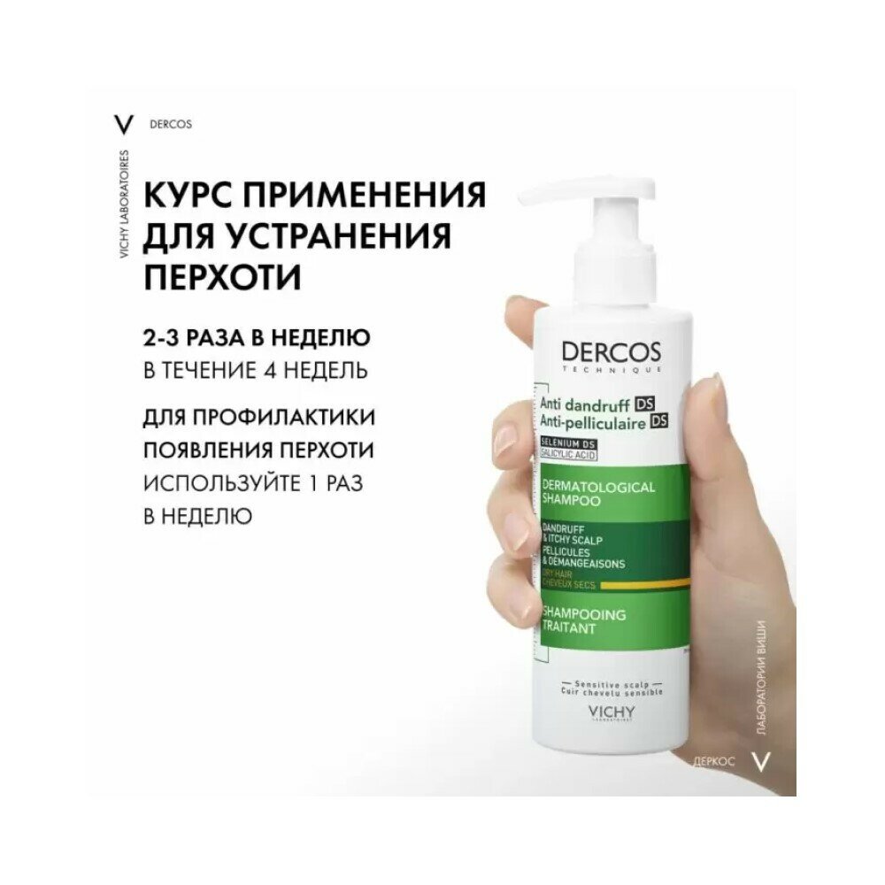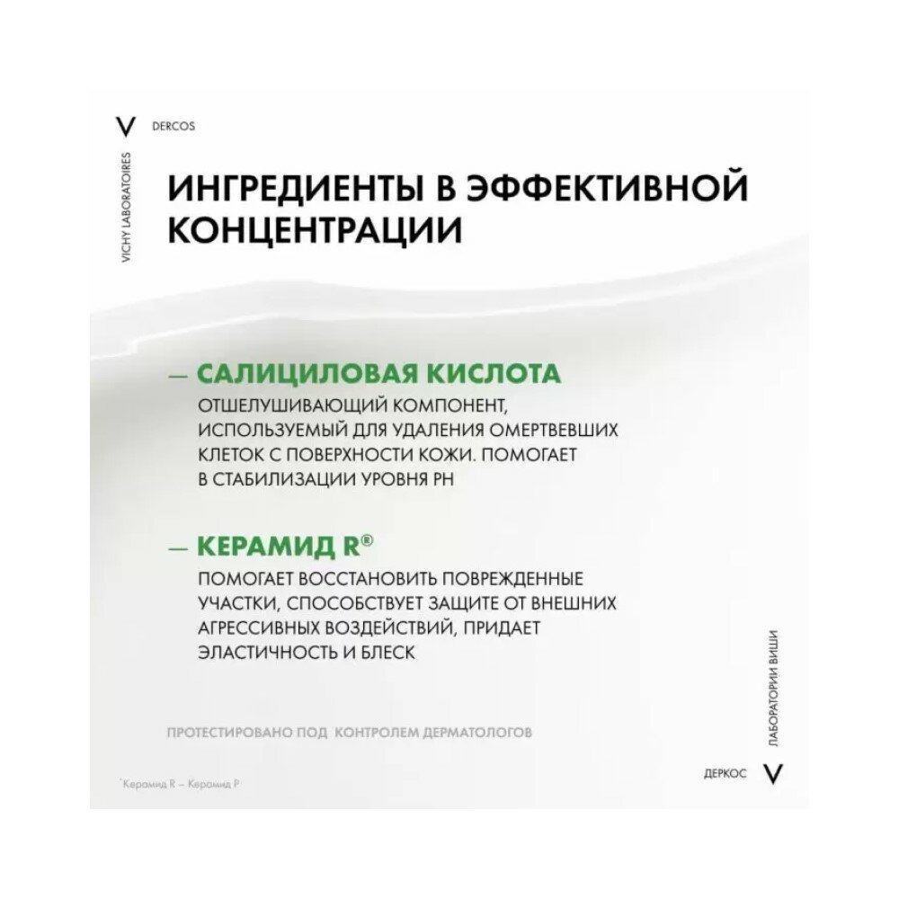 Впервые Лаборатории VICHY DERCOS выявили, что причина появления перхоти не только рост бактерии Malassezia, но и дисбаланс всего микробиома кожи головы (совокупность микроорганизмов, в норме присутствующих на коже). Этот дисбаланс усиливается под воздействием таких факторов, как агрессивная внешняя среда, экология, стресс, усталость. Технология с Селеном DS - самым эффективным ингредиентом против перхоти восстанавливает микробиомный баланс кожи головы: бактериальный баланс, предотвращение зуда, восстановление барьерных функций.