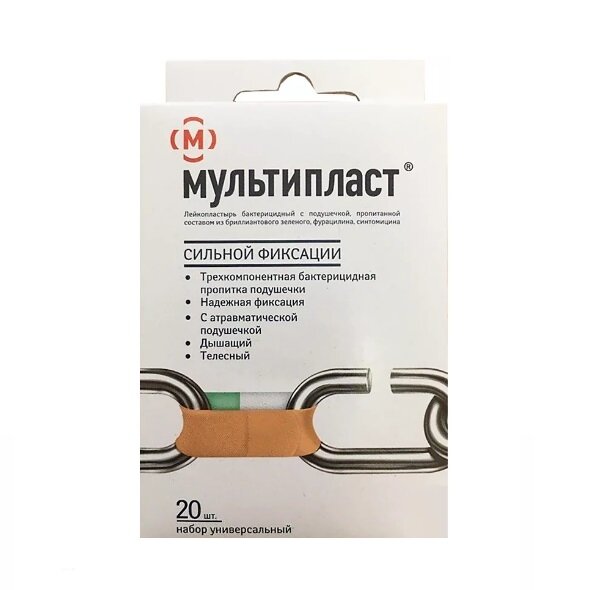 Пластырь Мультипласт бактерицидный сильная фиксация 20 шт. белый ОАО Новосибхимфарм (689655)