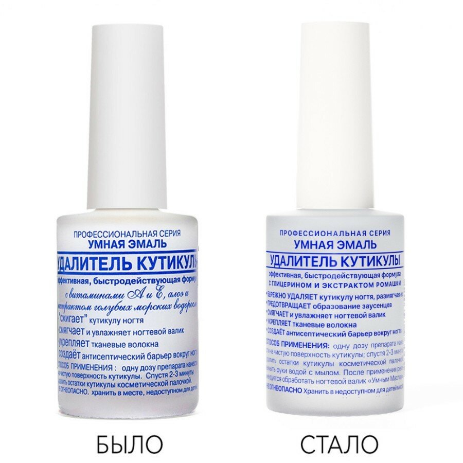 Тонко сбалансированная комбинация ингредиентов, натуральных компонентов и витаминов позволила создать эффективную и быстродействующую формулу препарата, удаляющего кутикулу без применения специальных косметических инструментов, которые могут ранить ногтевой валик и основание ногтевого ложе. Гидроокись калия омертвляет частички кожи в области кутикулы, что позволяет безболезненно её удалить, витамины А и Е смягчают и увлажняют ногтевой валик. Экстракт голубых морских водорослей обладает мощным противовоспалительным эффектом. Экстракт алоэ присутствующий в формуле препарата, улучшает обмен веществ, укрепляет тканевые волокна.