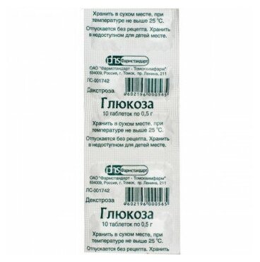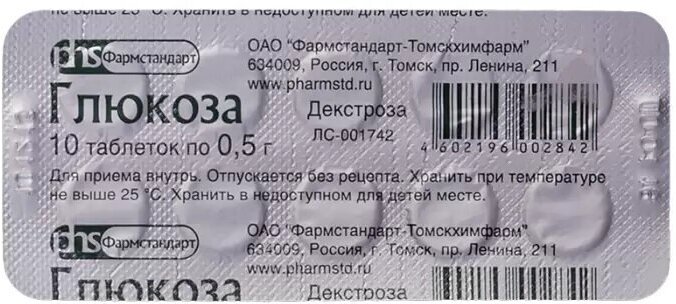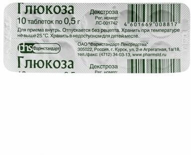 | Способ применения и дозы | Применяют внутрь или сублингвально, рассасывая таблетку. Дозировка и длительность применения зависит от состоянияпациента. При тяжелых гипогликемических реакциях рассасывают по 1-2 таблетки каждые 5 мин до устранения признаков гипогликемии (потливость, тремор,тахикардия, слабость). При нетяжелой гипогликемии возможен прием внутрь по 3-4таблетки каждые 15-30 мин до улучшения состояния. При отравлении гепатотропными ядами назначают внутрь по 1-2таблетки каждые 2-3 часа. При комплексной регидратационной терапии назначают из расчета 1-2 таблетки на 1 литр раствора солей для регидратации. |