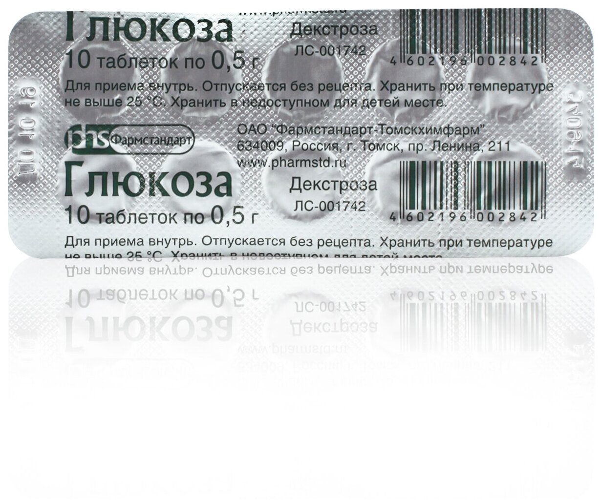 Глюкоза таблетки 500мг 10 шт. Фармстандарт(АйСиЭн)Томскхимфарм ОАО (1088429)