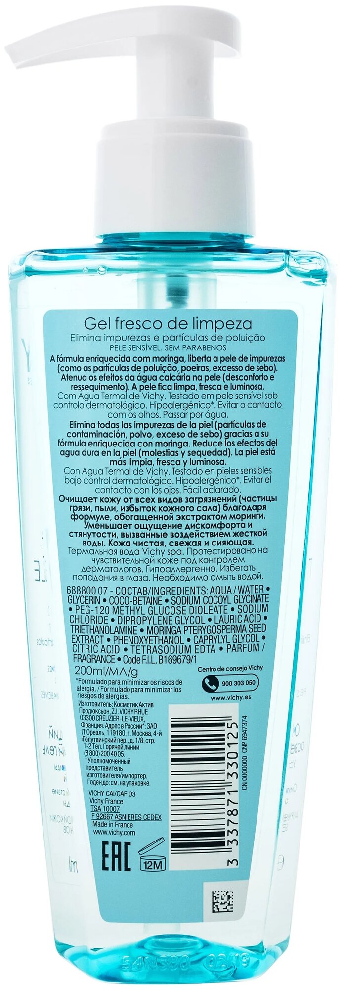 Гель Vichy (Виши) Purete Thermale очищающий освежающий 200 мл Косметик Актив Продюксьон (570864)