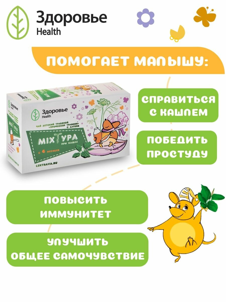 Природное «лекарство», помогающее ребенку в борьбе с кашлем. Каждый компонент, входящий в полезный состав чая «Профессор Травкин», бережно и, самое главное, эффективно воздействует на организм ребенка, не вызывая привыкания.