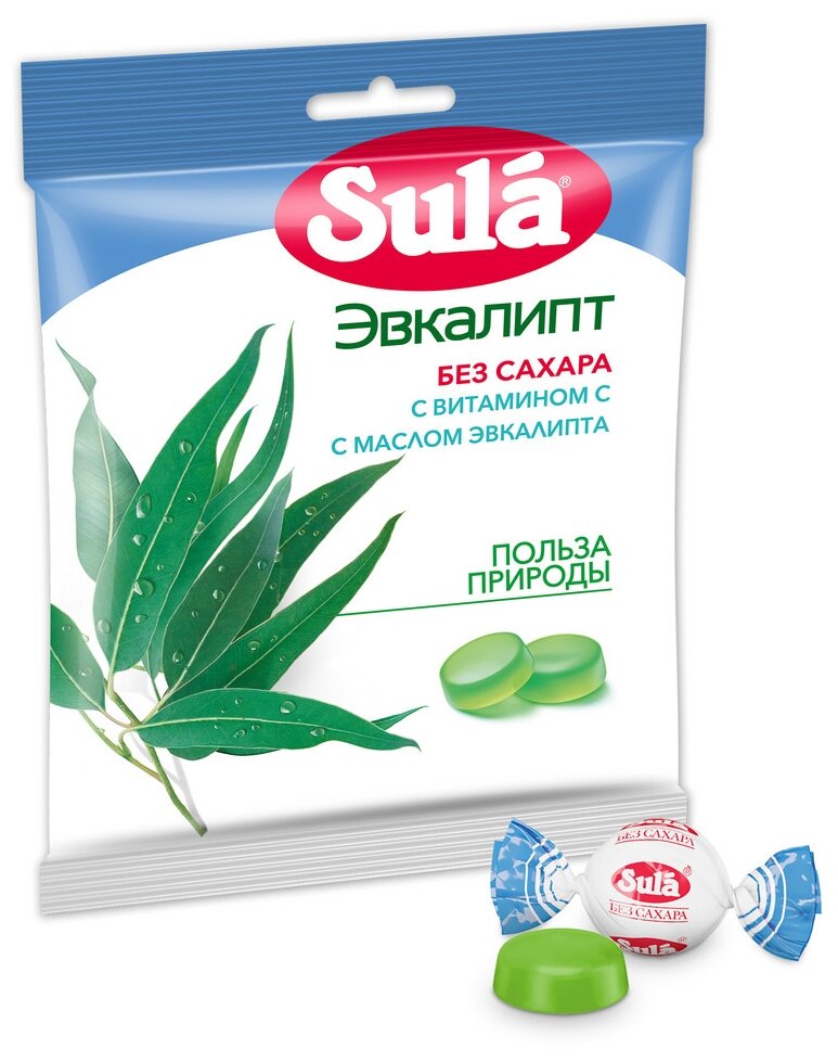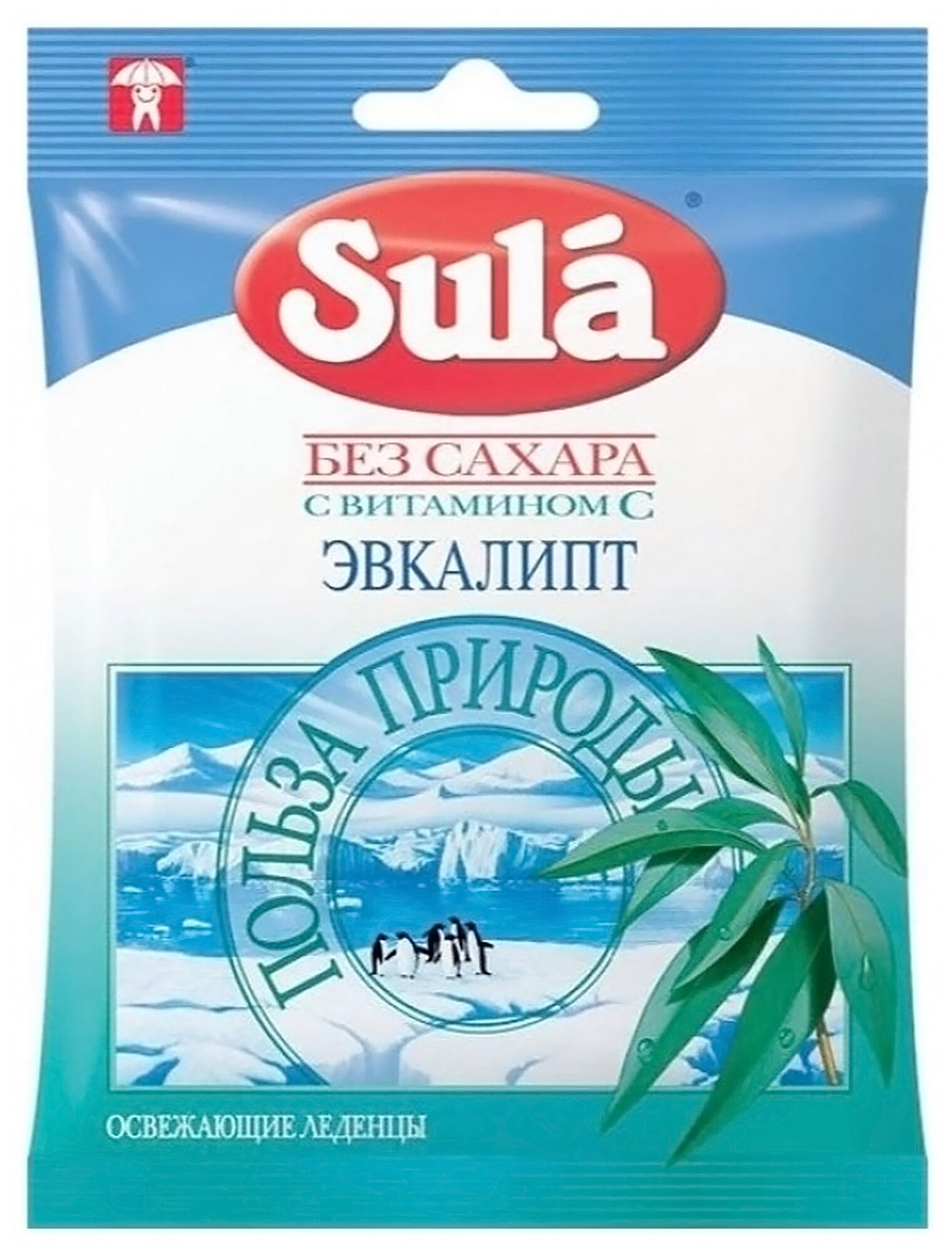 Леденцы Sula (Сула) фруктовые Эвкалипт без сахара с витамином С 60 г Перфетти Ван Мелле RU (898497)