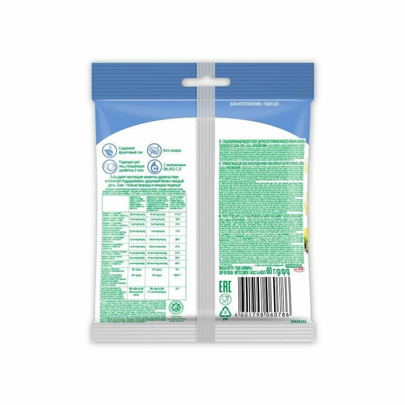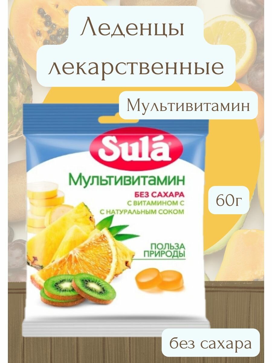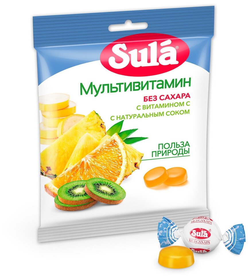 Леденцы Sula (Сула) фруктовые Мультивитамин без сахара с витамином С 60 г Перфетти Ван Мелле RU (898497)