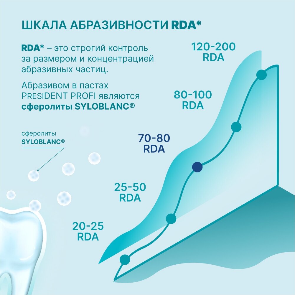 Зубная паста President Profi Sensetive 50 мл - это строгий контроль за размером и концентрацией абразивных частиц. Специально подобранные абразивы безопасно и эффективно удаляют налет, очищают и полируют зубную эмаль. Гидроксиапатит– отвечает за процесс реминерализации зубной эмали: Восстановление микроскопических повреждений и внутреннего слоя эмали. Адгезия и уменьшения зубного налета. Снижение чувствительности зубной эмали. Липа – успокаивающий эффект. Ромашка снимает воспаление. Мята – экстра свежее дыхание. Нитрат калия снижает чувствительность эмали и дентина. Фтор укрепляет эмаль и защищает от кариеса