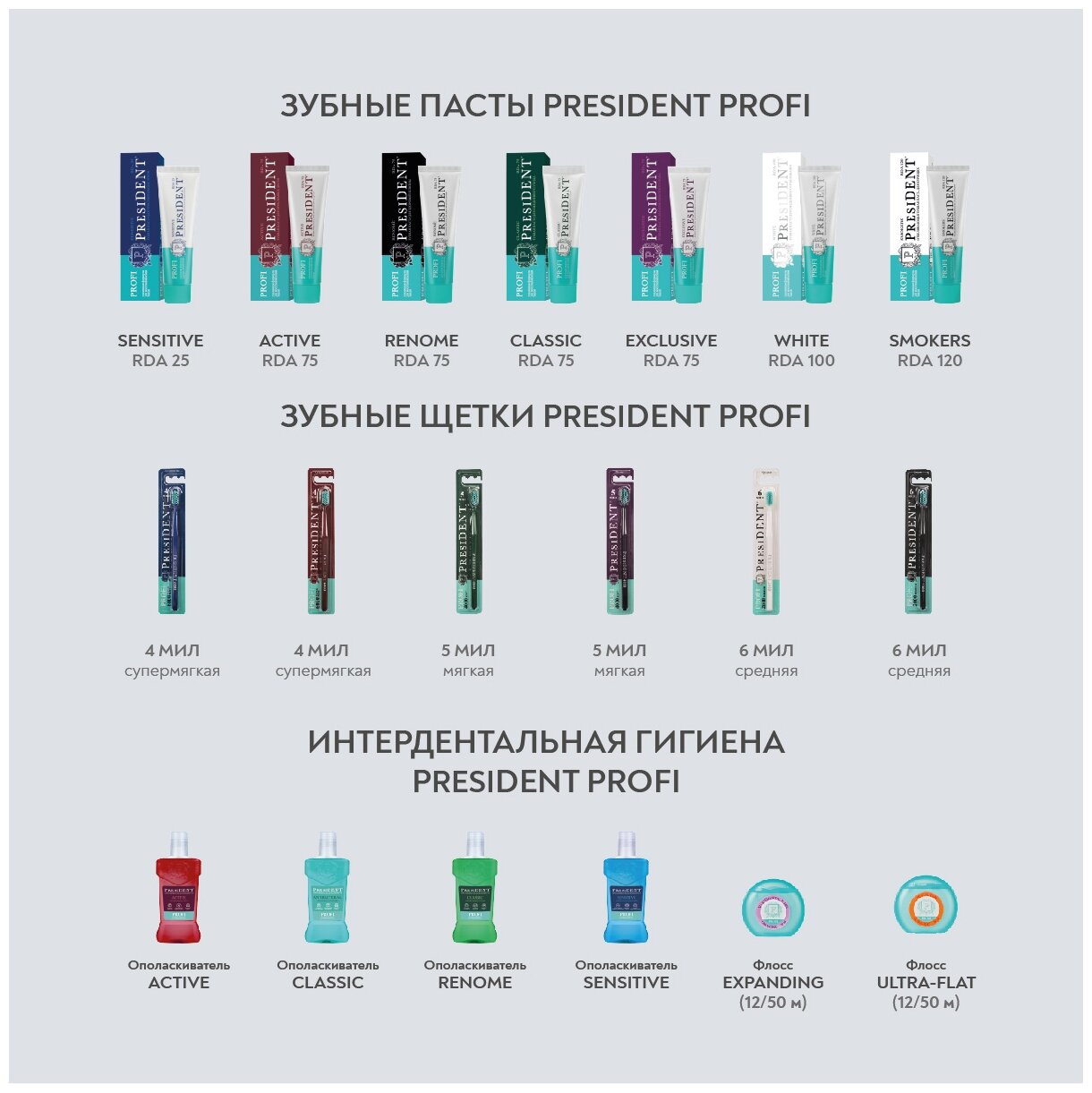 | Состав набора | President Sensetive - Зубная паста для чувствительных зубов, 50 мл |