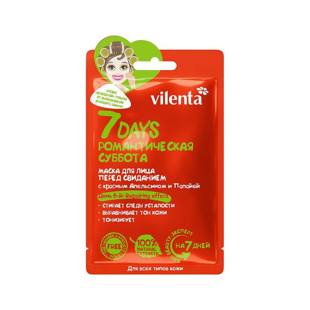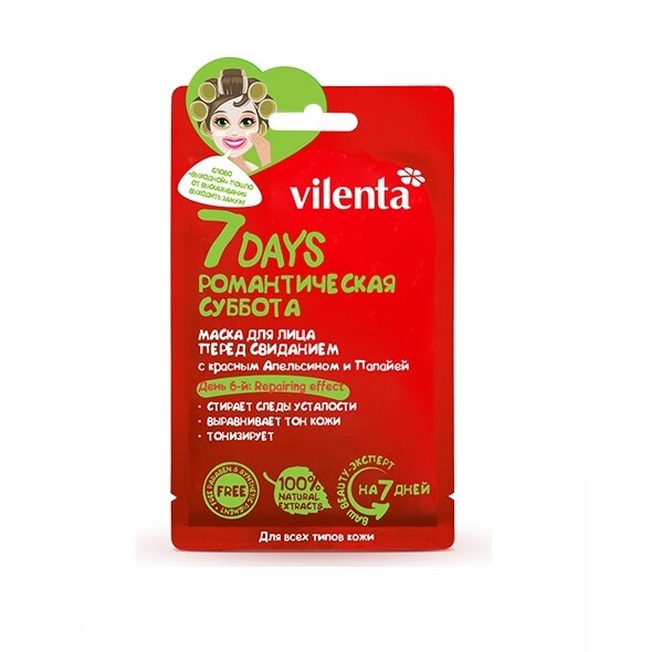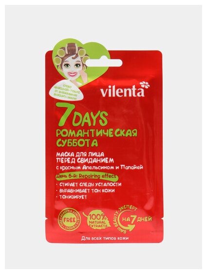 Маска Vilenta (Вилента) для лица 7 days Романтическая суббота перед свиданием С красным апельсином и папайей 28 г 1 шт. NOX-BELLCOW Cosmetics Co Lt CN (831686)