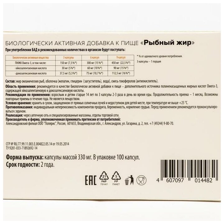 БАДы Рыбий жир и омега-3 ООО Полярис RU »