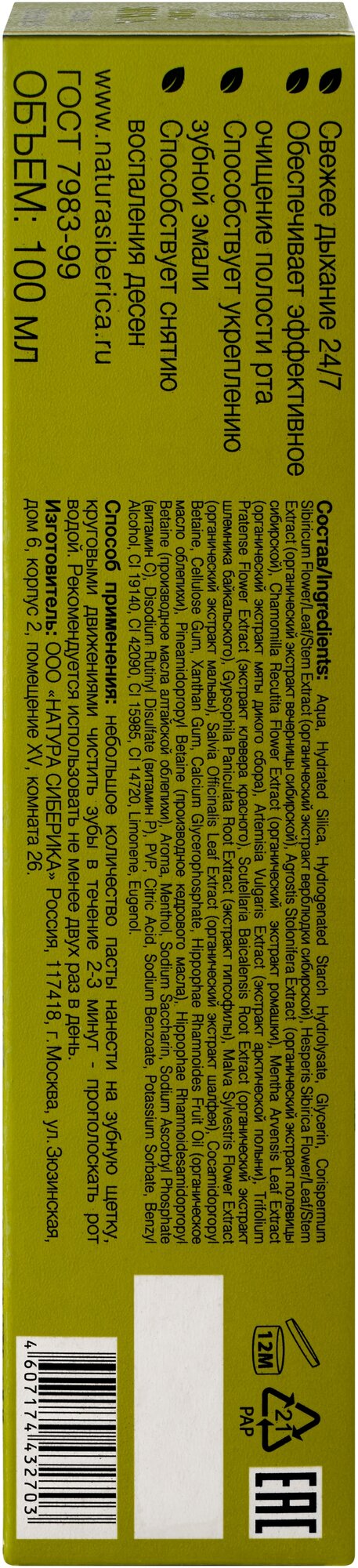 Паста Natura Siberica (Натура Сиберика) зубная 7 северных трав 100 мл ООО "Натура Сиберика" RU (574153)