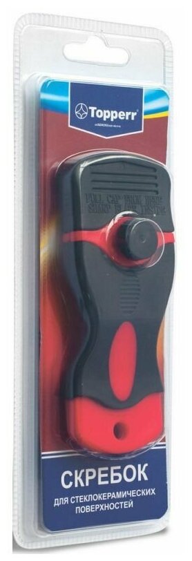 | Дополнительная информация | рекомендуется использовать сменные лезвия TOPPERR (артикул 1310 SC5). снимите защитную крышку, установив скребок под 30 градусов к поверхности, аккуратно очистите пригоревшие загрязнения горизонтальными движениями |