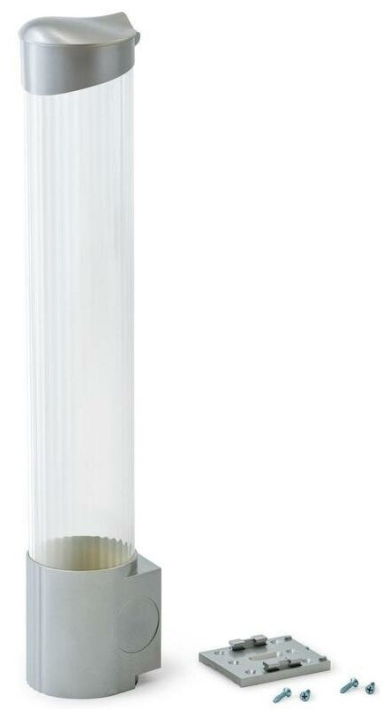 Стаканодержатель на саморезах. Незаменимый аксессуар для кулеров и пурифаеров установленных в офисе и общественных местах. Вмещает 100 пластиковых стаканчиков. Верхняя крышка защищает стаканчики от пыли и случайных попаданий воды. Крепление осуществляется.