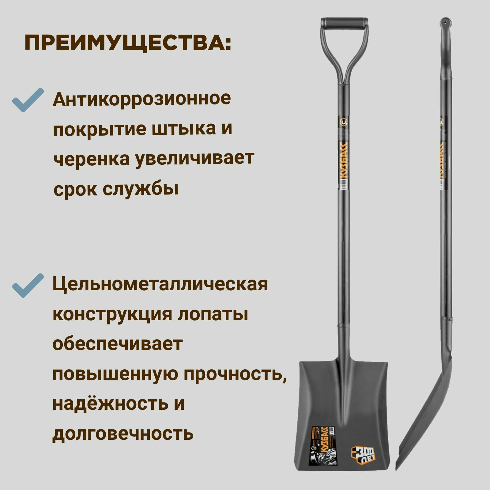 Цельнометаллическая конструкция лопаты обеспечивает повышенную прочность, надёжность и долговечность.