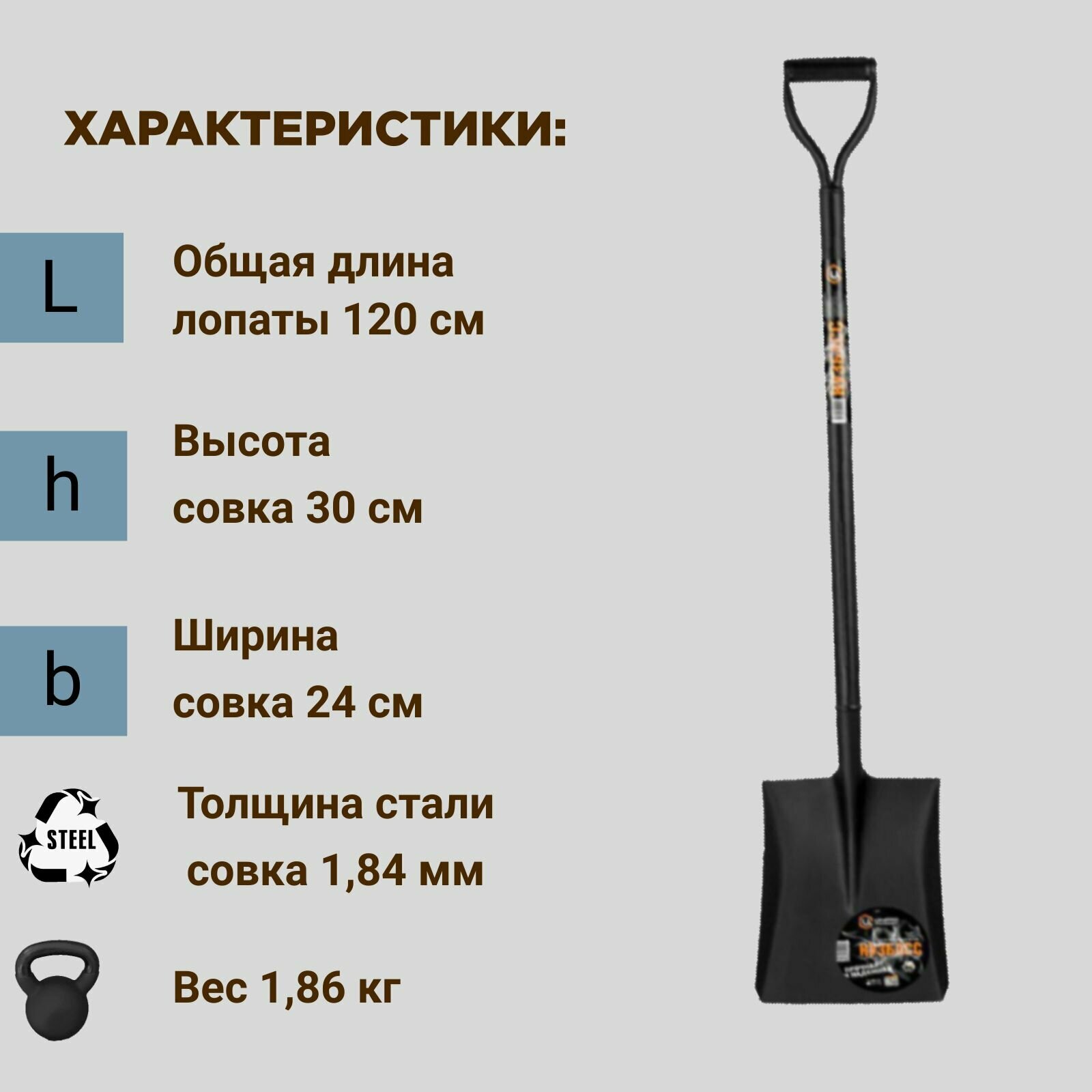 Совковая лопата идеальна для строительных работ, предназначена для работы с песком, гравием, почвой, другими сыпучими и садовыми материалами.