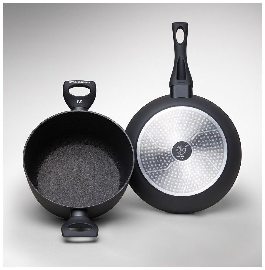 Кастрюля Virtus в двух размерах 20 см объемом 3 литра и 24 см объемом 3,7 литра. Посуда Virtus не боится металлических приборов благодаря суперпрочному покрытию Resistek от TVS. Кастрюля Virtus подходит для всех типов плит, включая индукционные. Удобные ручки с мягким покрытием не нагревается и удобны руке. Сделано в Италии. Пожизненная гарантия.