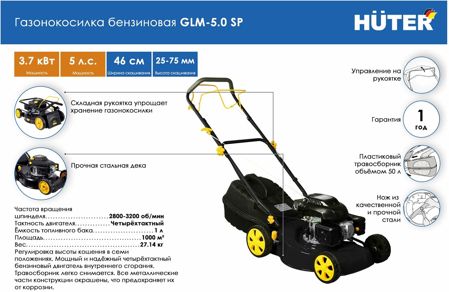 Отзыв от дачного мастера. на бензогазонокосилку Huter GLM-5.0S . для пяти соток супер