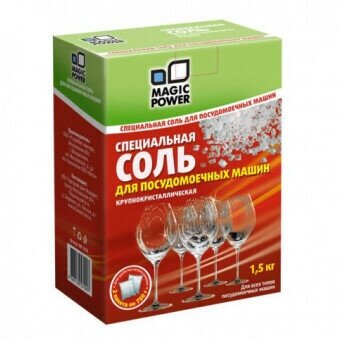 Специальная соль для посудомоечных машин Magic Power Используется для нормального функционирования ионообменника во встроенном в посудомоечной машине устройстве смягчения воды. В областях с жесткой водой использование соли обязательно. Увеличивает ресурс посудомоечной машины, обеспечивает ее нормальную работу. Защищает нагревательный элемент посудомоечной машины от образования известкового налета и продлевает срок его службы.