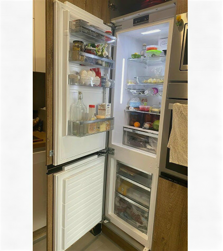 Встраиваемый холодильник Jacky`s White оснащен системой No Frost в морозильной камере, которая обеспечивает циркуляцию воздуха и не дает образоваться наледи на стенках. Общий объем составляет 256 л, из которых в морозильной камере – 75 литров, в холодильной – 181 л.