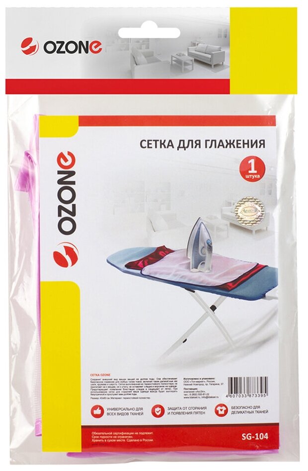 Сетка для глажения OZONE подходит для всех типов тканей. Это практичная вещь, которая способна во время глажения защитить деликатные вещи от лоснения. Использование сетки позволяет также избежать появления на вещах следов гари от утюга.Защита деликатных тканей – основная задача OZONE . Именно поэтому данная модель сетки должна быть в арсенале любой хозяйки. Эта сетка является альтернативой марли: она не мнется и не желтеет, на ней не появляются ворсинки, поэтому изделие прослужит довольно долго.