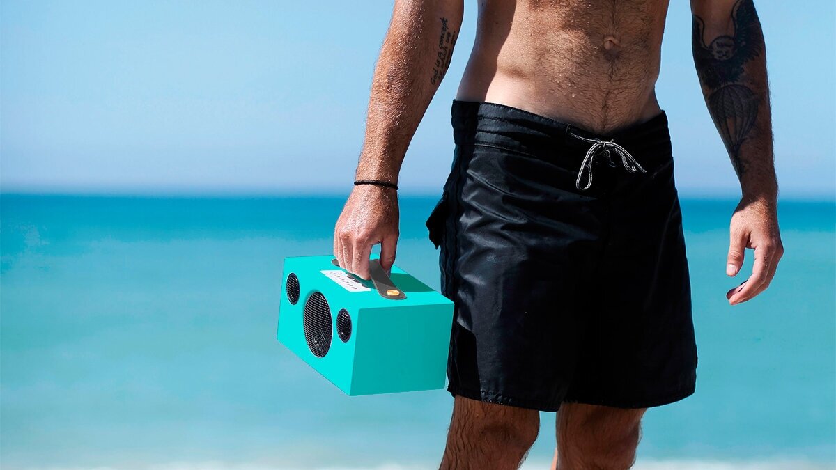 Портативная беспроводная колонка, конфигурация 2.1. Подключение по Bluetooth или через линейный вход. До 30 часов автономной работы. Вес 2,1 кг.