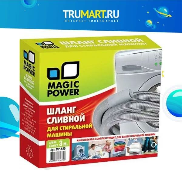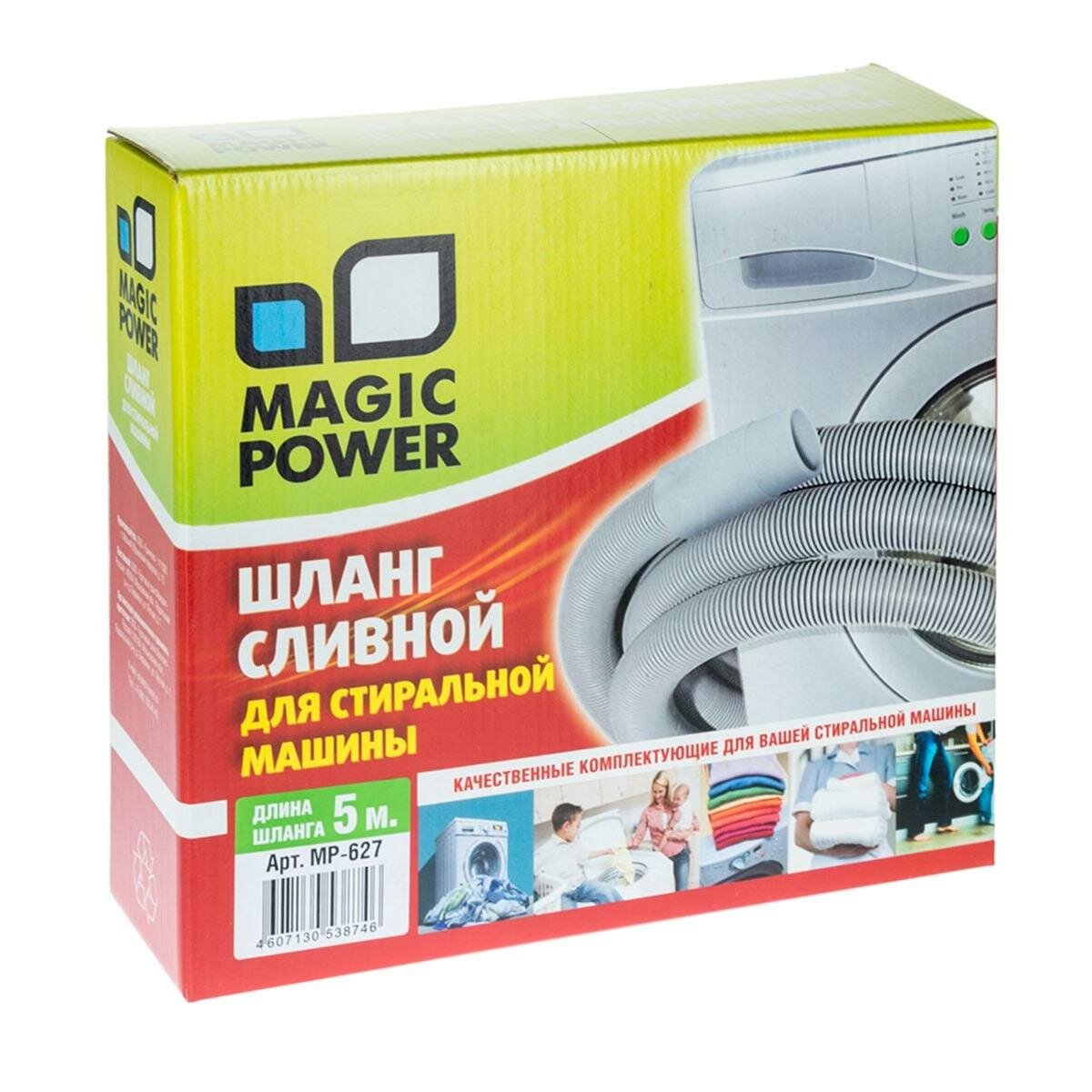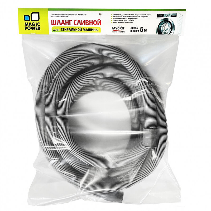 Шланг сливной сантехнический Magic Power предназначен для подключения стиральной машины к системе канализации. Шланг изготовлен из полипропилена c концевыми фитингами из мягкой пластичной резины.
