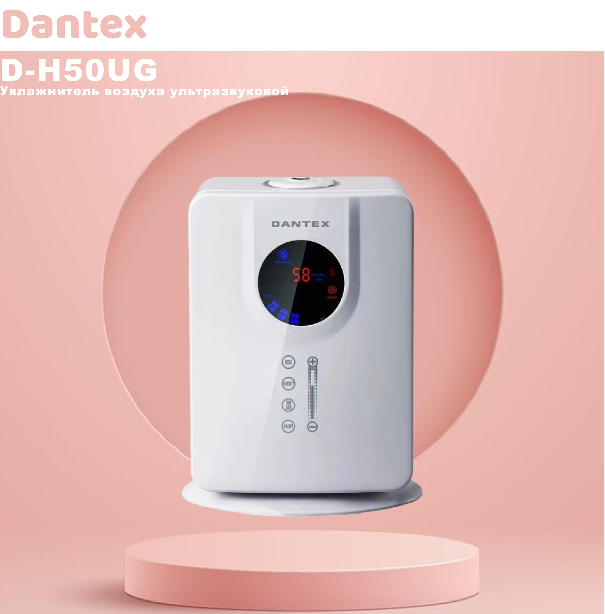 Ультразвуковой увлажнитель воздуха Dantex D-H50UG создаст здоровую и комфортную атмосферу в Вашем помещении, обеспечив необходимый уровень влажности воздуха. Датчик уровня влажности воздуха (гигростат) позволит контролировать степень увлажнения воздуха. Сенсорное управление прибором позволит без труда задавать требуемые параметры работы увлажнителя для дома, а жидкокристаллический дисплей облегчит процесс управления устройством.