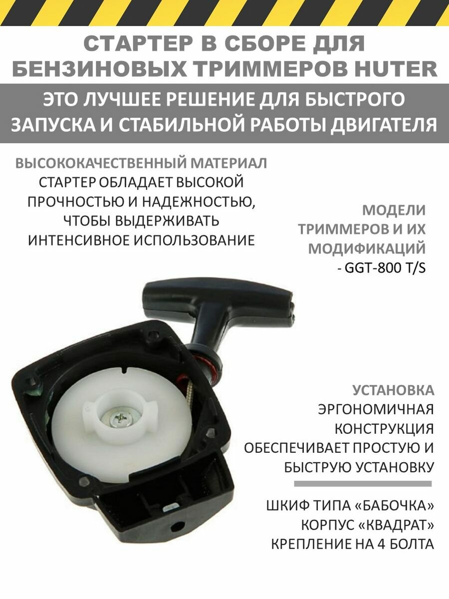 Готовый стартер в сборе для бензотриммеров Huter, Описание: Готовый стартер в сборе для бензиновых триммеров Huter GGT-800T/S.