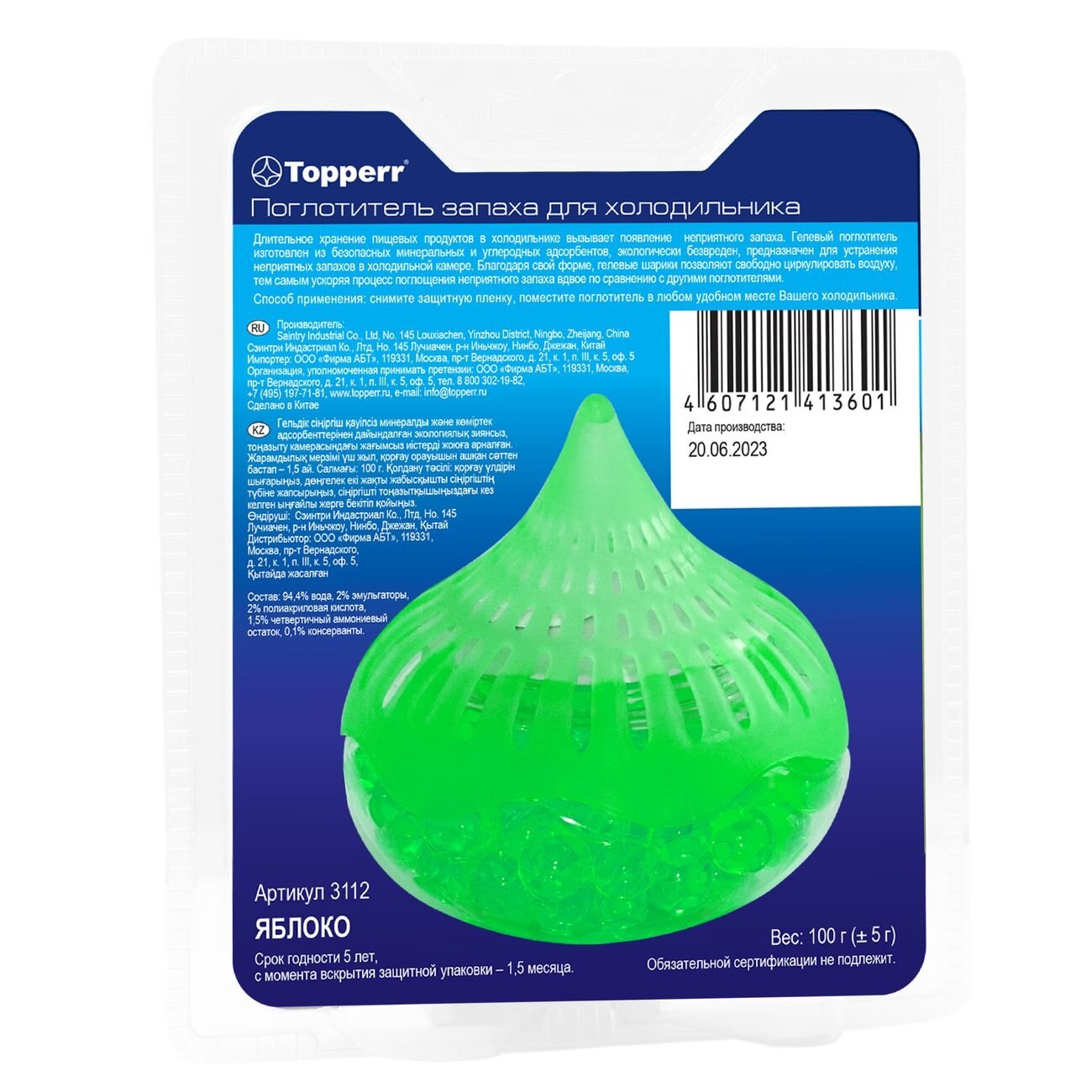 Гелевый поглотитель изготовлен из безопасных минеральных и углеродных адсорбентов, экологически безвреден, предназначен для устранения неприятных запахов в холодильной камере.