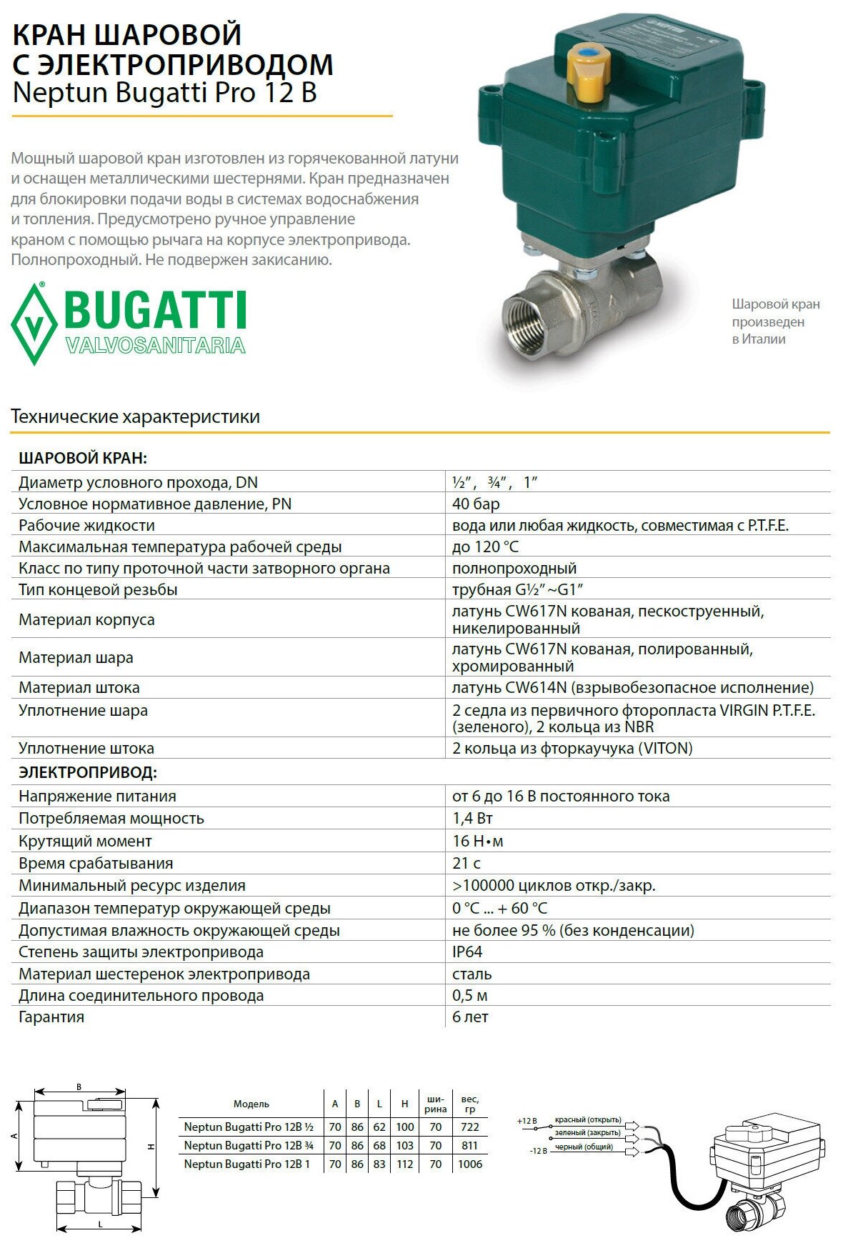 Кран шаровый с электроприводом Neptun Bugatti Pro 12В 3/4