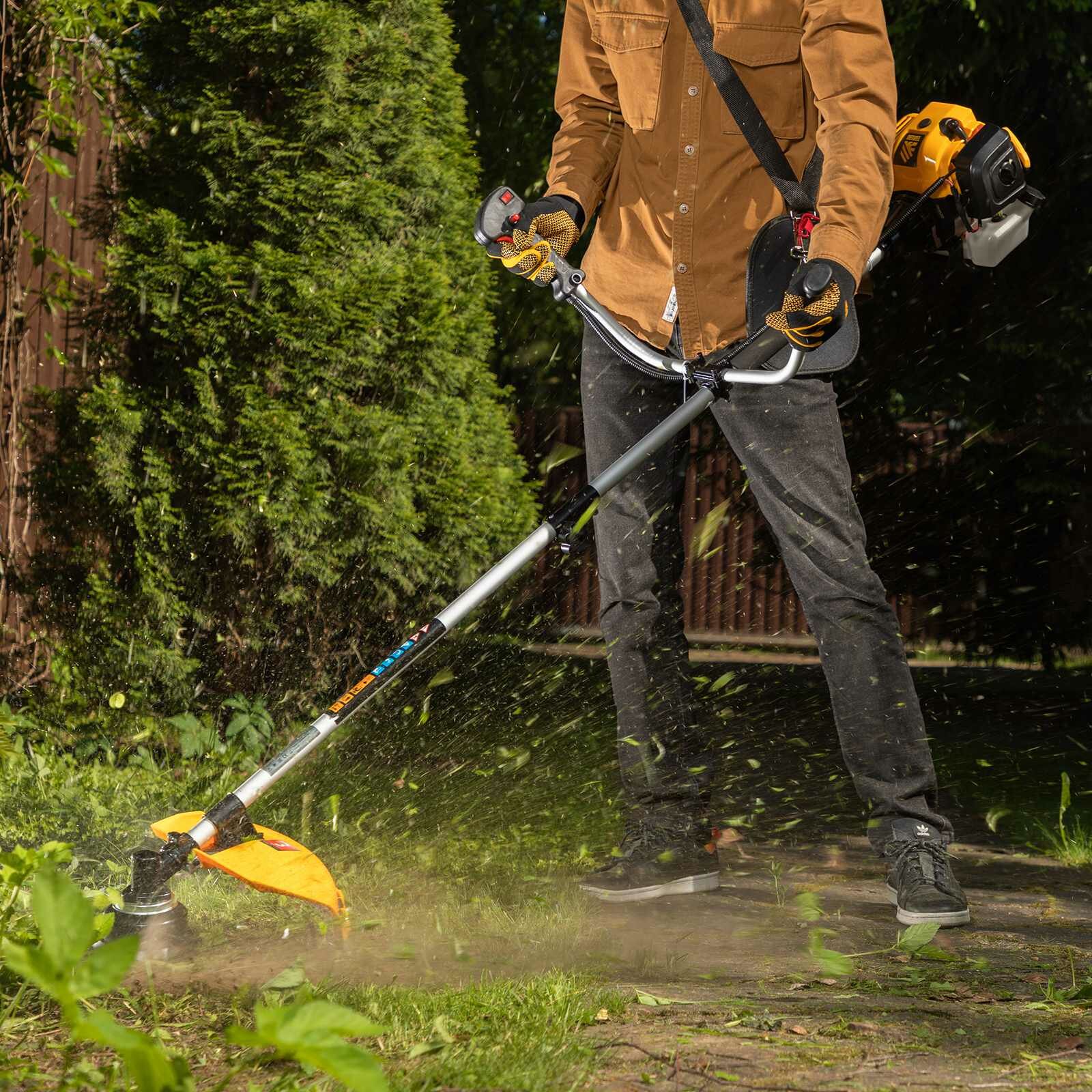 Бензиновый триммер Denzel DT 33S легко справится с бурьяном и подравняет газон даже в труднодоступных местах. Он оснащен экономичным, надежным и простым в эксплуатации двигателем мощностью 1,8 л. с. Все его детали покрыты хромом, что значительно продлевает его ресурс. Испытания подтвердили, что триммер способен работать до отказа 80 часов подряд. Его удобно хранить и перевозить благодаря разъемной штанге. А прочный стальной коннектор надежно удержит всю конструкцию. Малый вес 7,6 кг, система гашения вибраций, сбалансированность и удобное управление позволяют комфортно работать продолжительное время.Преимущества Полуавтоматическая катушка позволяет настроить длину лески легким ударом катушки о землю прямо в процессе работы Легкий старт - даже после долгого простоя триммер легко завести благодаря топливному насосу Усиленная классическая конструкция стартера позволяет легко завести двигатель Расход топлива при максимальной нагрузке - 1.1 л/ч. Полного бака - 0.82 л. хватит почти на 45 мин. работы Полупрозрачный бак позволяет вовремя отслеживать уровень топлива Удобное хранение и перевозка - штанга легко разбирается на 2 части Комфортное управление - благодаря велосипедной асимметричной рукоятке с прорезиненными ручками Можно работать с мокрой травой Удобное и простое управление - все кнопки собраны на правой рукоятке: выключатель, клавиша газа, и блокировка клавиши газа от случайного нажатия Пластиковый кожух защищает от вылетающей травы, попадающих под нож камней и веток. На кожухе расположен нож для обрезки лески Фильтр не вываливается во время работы благодаря винтовому креплению Расширенная гарантия - 3 года