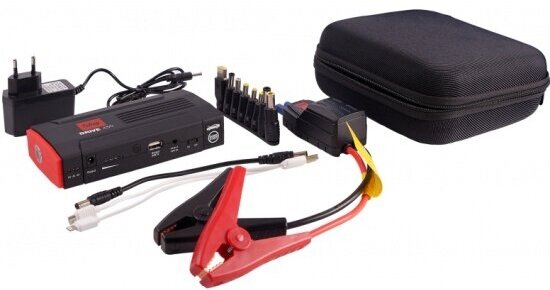 | Комплект поставки | - пусковое устройство; - клеммы для запуска двигателя; - адаптер переменного тока; - USB-кабель; - набор переходников для зарядки ноутбуков; - чехол. |