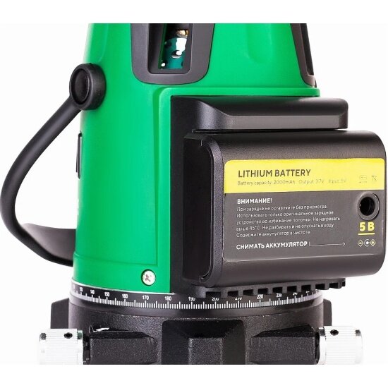 Брал для строительных нужд (специализированно занимаюсь монтажом). Спустя год интенсивного использования в юстировке не нуждался (хотя часто опрокидывал его). Благодаря винту на корпусе настроить (подстроить) луч до нужного ориентира очень легко. Регулировочные винты для вертикали выручают периодически. Угол развертки около 180гр (вертикаль и горизонт).
