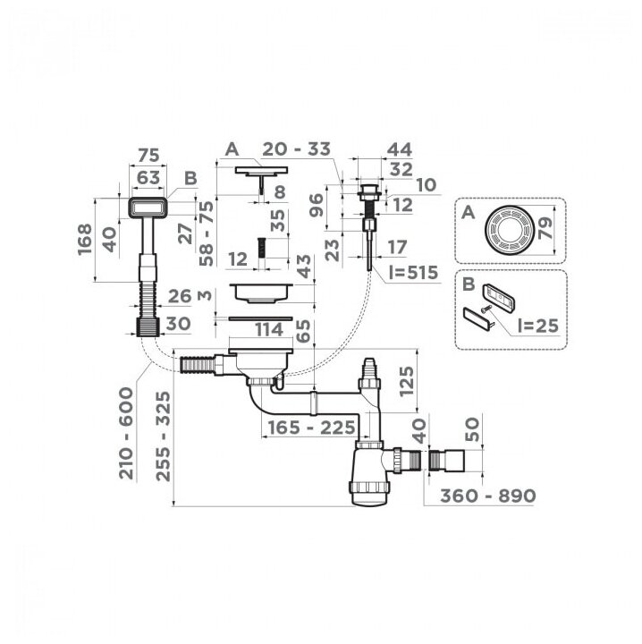 Арматура для одночашевых моек с клапаном-автомат Omoikiri WK-1-LG-A