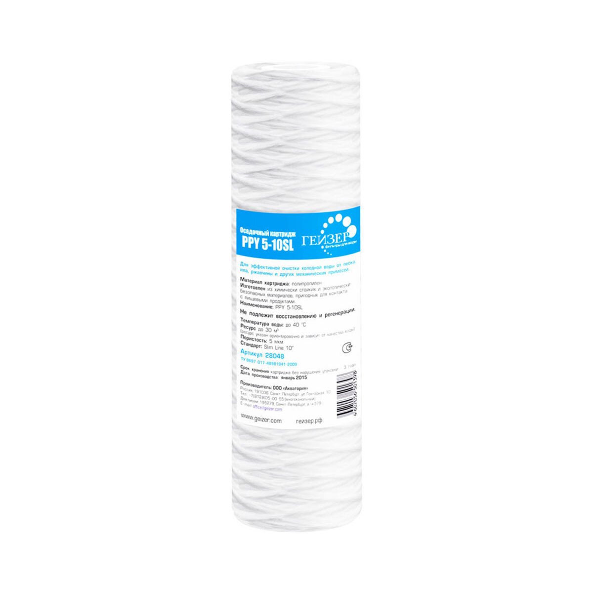 Картридж PPY 10 - 10SL изготовлен из полипропиленового шнура, имеет большую грязеемкость, чем другие осадочные картриджи. Восстановлению не подлежит, после окончания ресурса заменяется на новый.