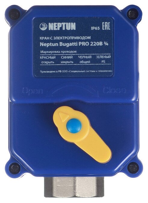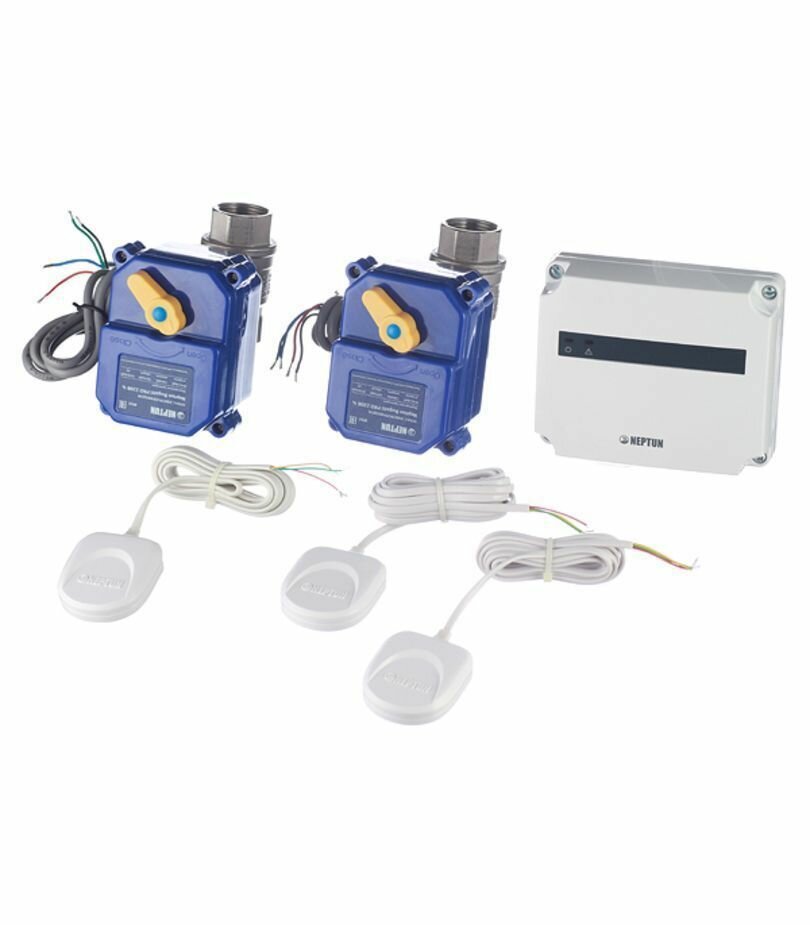 | Состав комплекта | Модуль управления Neptun Base - 1 шт Датчик Нептун SW 005 - 3 шт Кран шаровый с электроприводом Bugatti Pro 230В - 2 шт |