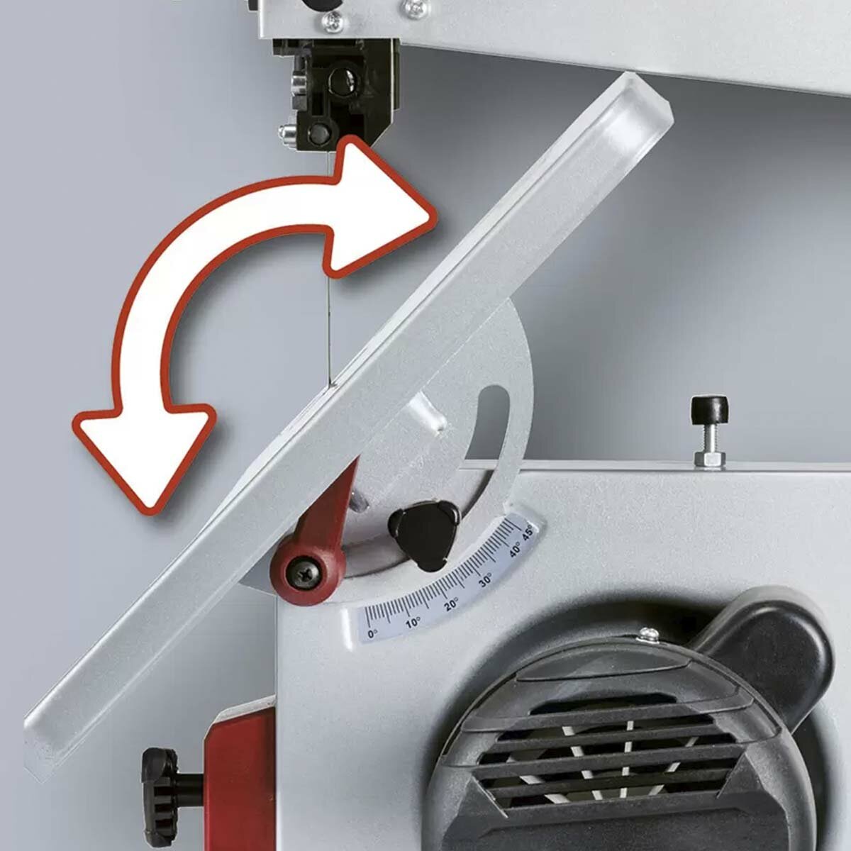 **Пила ленточная Einhell (4308018)** - это идеальный базовый инструмент для амбициозных энтузиастов DIY. Регулировка высоты не только позволяет выполнять пропилы с высокой точностью, но также обеспечивает идеальную высоту для удобства и безопасной работы пользователя. Многопозиционный стабилизатор пильного полотна сокращает его вибрацию. Защита пильного полотна также имеет регулировку по высоте. Для безопасной работы с пилой в комплект входит толкатель заготовок. Пильный стол имеет бесступенчатую регулировку угла наклона, что деалет возможным выполнение даже сложных угловых пропилов. Параллельный упор и направляющая на подшипниках будут Вашими незаменимыми помощниками при выполнении прямых и точных пропилов.