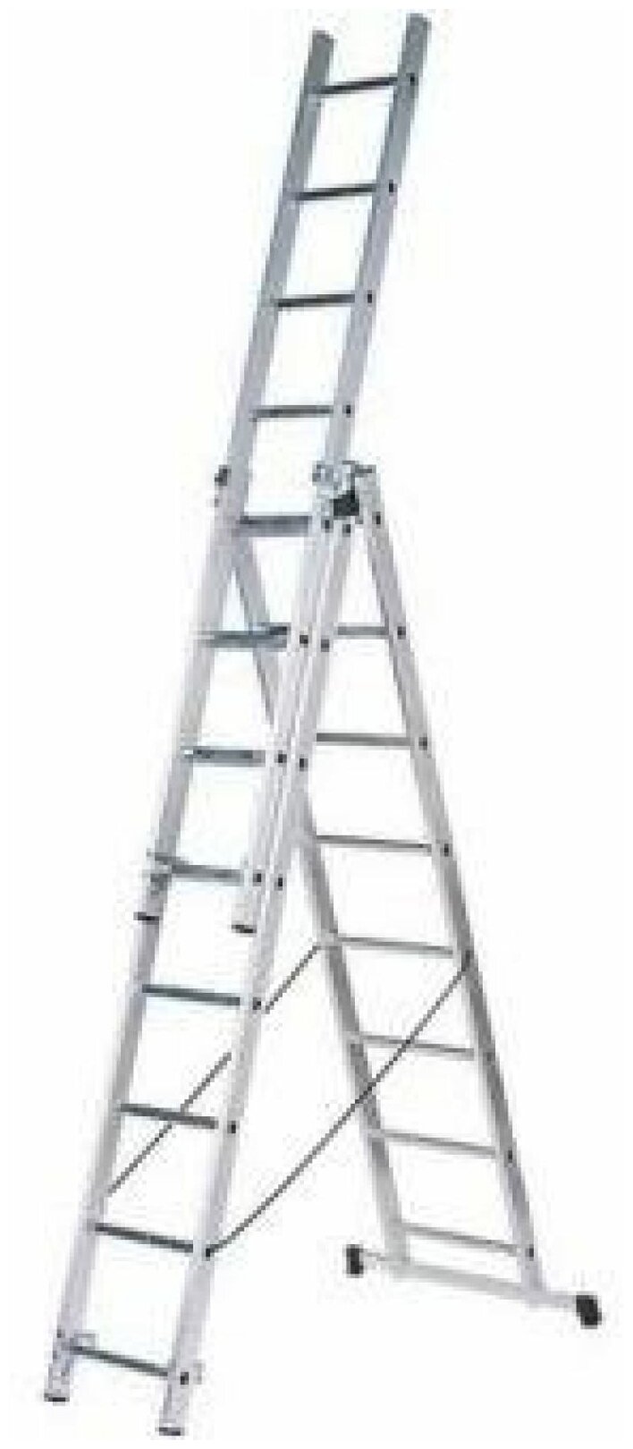 Лестница алюминиевая ВИХРЬ ЛА 3х12 при необходимости может использоваться как стремянка, стремянка с выдвижной третьей секцией, как приставная выдвижная лестница, а также третья секция съемная и может использоваться как отдельная лестница.Преимущества Корпус с антикоррозийным покрытием, изготовлен из алюминия Благодаря пластиковым наконечникам ножек лестница не скользит по поверхности Модель компактная, удобно хранить благодаря механизму трансформации Поперечная траверса надежно фиксирует лестницу на поверхности