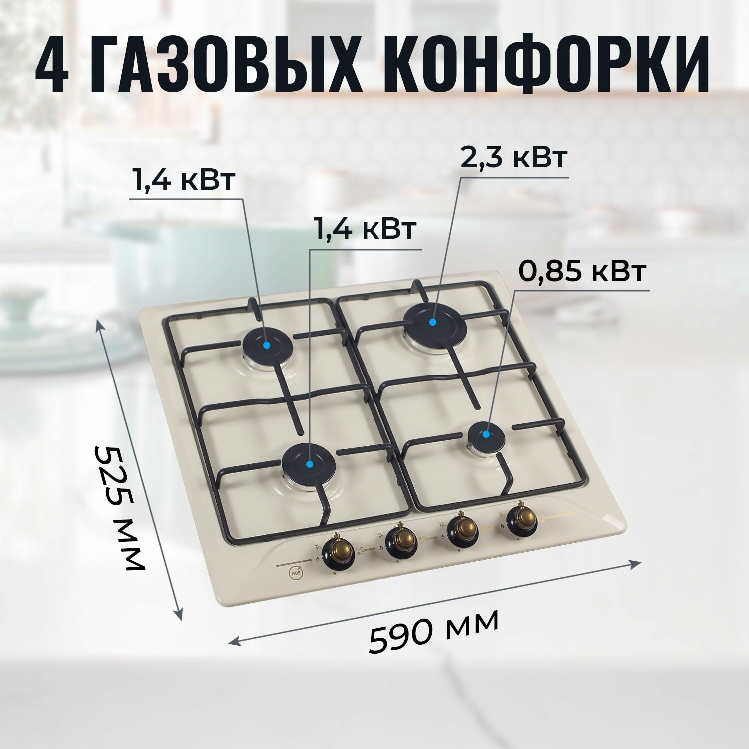 Встраиваемая газовая варочная поверхности порадует вас своей надежной работой и дизайном в стиле ретро, а ваша семья точно оценит вкус блюд, которые вы сможете приготовить с ее помощью. Приобретение этой модели цвета слоновой кости с ручками бронзового цвета будет отличным решением для кухни светлых тонов в классическом стиле, стиле кантри или прованс, а подключается она как к магистральному, так и к баллонному газу.Газовая варочная поверхность оснащается электроподжигом и комплектом дополнительных жиклеров (форсунок) для подключения к баллонному газу. При желании вы также можете докупить к этой поверхности держатель для сковороды ВОК, подставку для турки и специальный противень для приготовления гриля. Вся кухонная техника швейцарского бренда MBS соответствует всем современным европейским стандартам, а гарантия производителя составляет 3 года.
