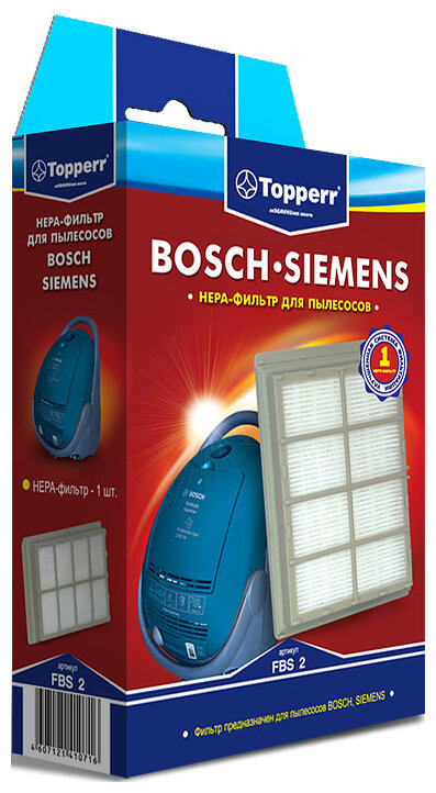 HEPA-фильтр Topperr для пылесосов Bosch и Siemens. Обладает высочайшей степенью фильтрации, задерживает 99,5% пыли. Благодаря специальным свойствам фильтрующего материала, фильтр улавливает мельчайшие частицы, позволяя очищать воздух от пыльцы, микроорганизмов, бактерий и пылевых клещей.