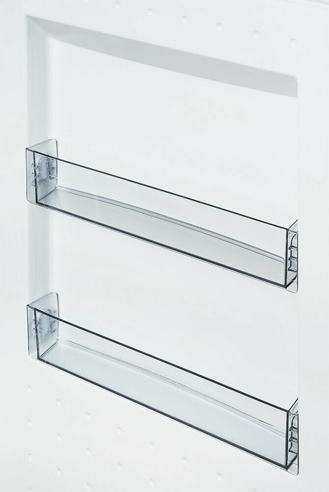Холодильник оснащен полками из закаленного стекла, способными выдержать вес до 20 кг, кроме того их можно переставлять по высоте. Он рассчитан для работы при температуре внешние среды от +16°С до +38°С (климатический класс N-ST).