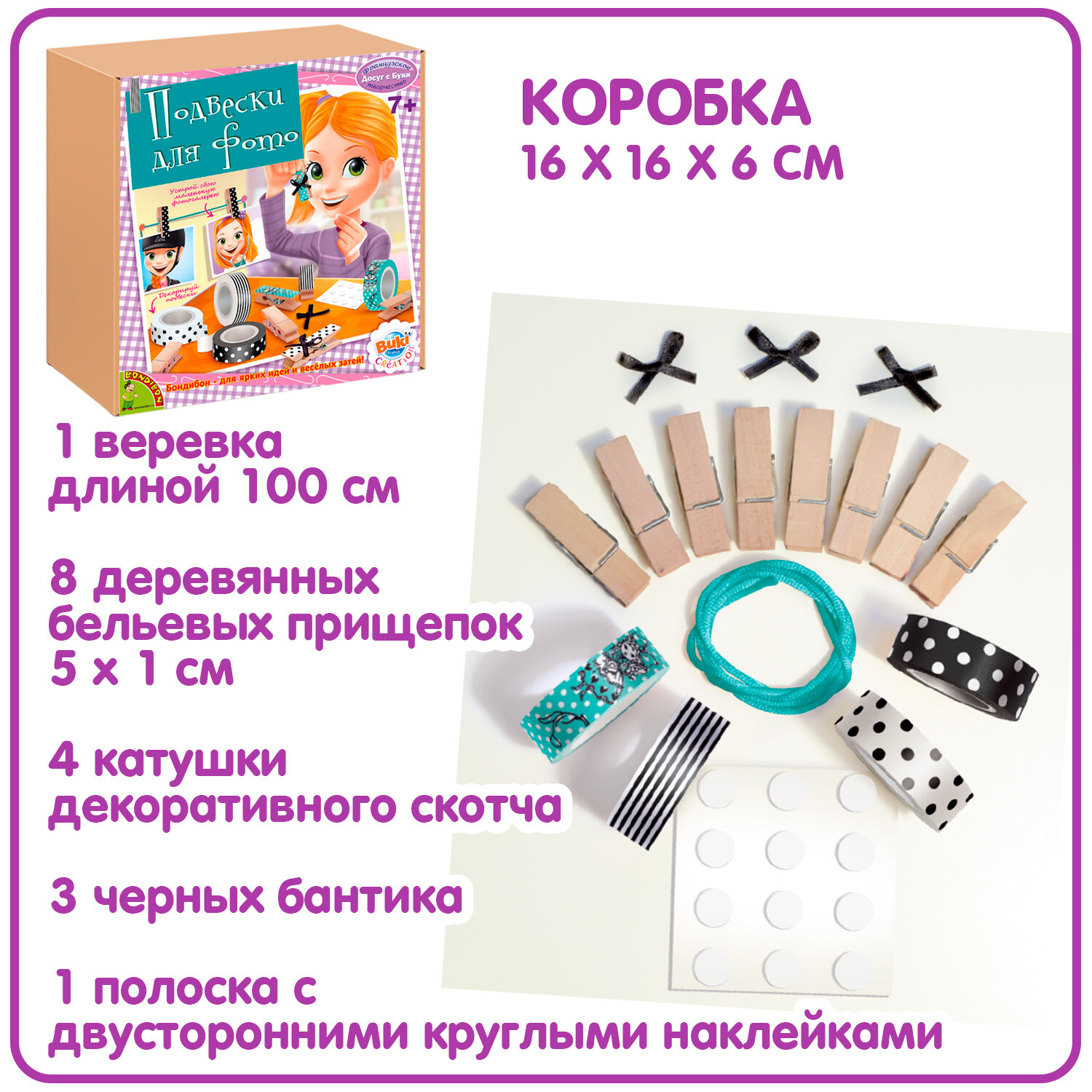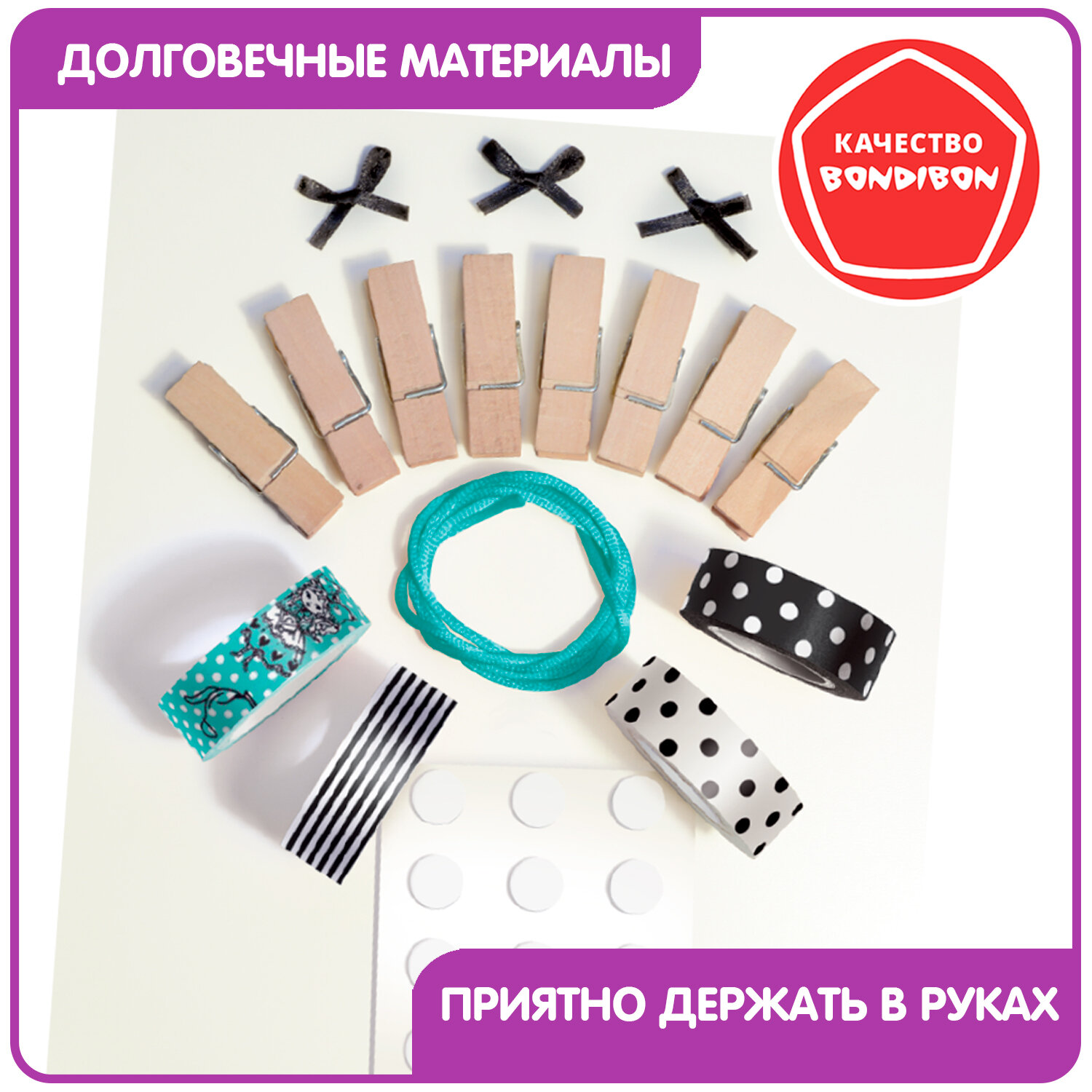 | Состав набора | прищепка; веревка; лента; бант |