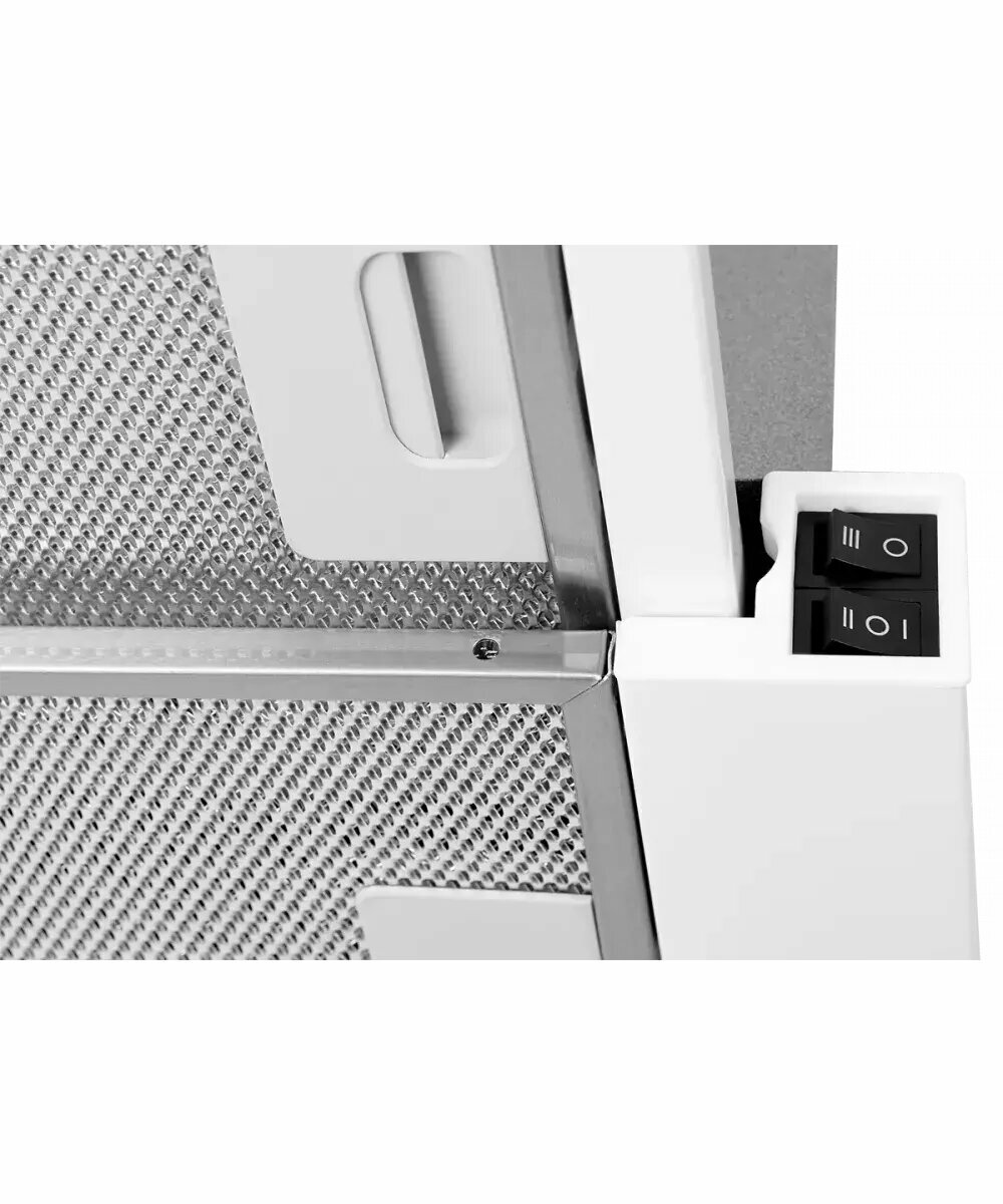 Компактная встраиваемая вытяжка белого цвета будет незаменима в борьбе с опасными для вдыхания испарениями, гарью, сажей и дымом, неизбежно заполняющими кухонное пространство при подгорании блюд на плите. Этот прибор оснащен стандартным механическим управлением на кнопках, поэтому понравится тем, кто не воспринимает работу с сенсорами. Такой агрегат отлично впишется в интерьер небольшого кухонного помещения, оформленного в стиле хайтек. Немецкий бренд KUPPERSBERG оснастил модель вполне достойным функционалом: отведение и рециркуляция загрязнений воздуха; мощность 550 м3/ч; три варианта выбора скорости; качественный фильтр, способный нейтрализовать даже мелкие частицы продуктов горения; LED-освещение рабочей зоны. средний уровень шума (56 Дб). Кухонная вытяжка сможет поддерживать чистоту воздуха на небольшой кухне площадью до 20 м2.