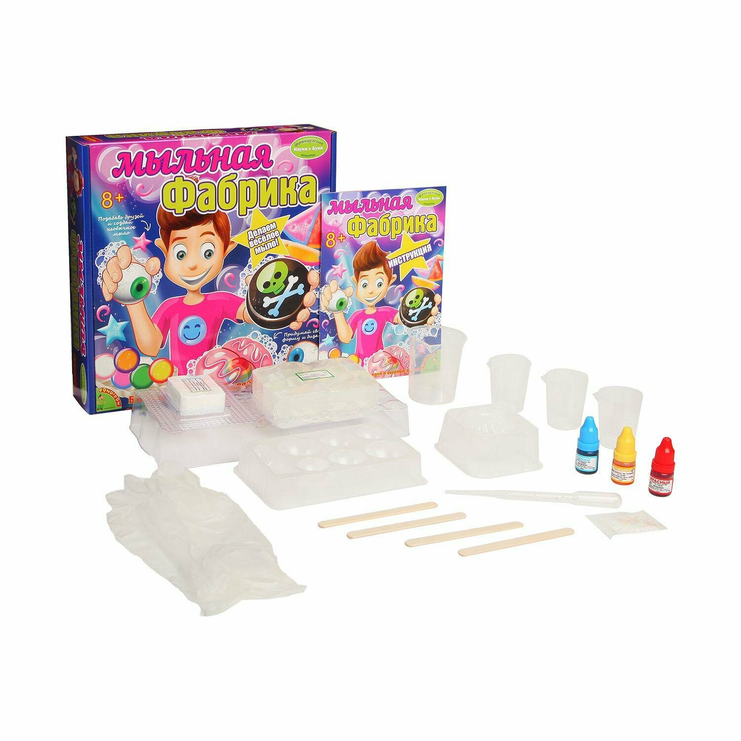 Обычным мылом мы пользуемся ежедневно. А необычное, прикольное мыло, которое не найдешь в магазине, можно сделать самостоятельно. Для этого не нужно открывать собственную мыльную фабрику – она сама придет домой к юному мыловару! Научно-познавательный набор «» научит ребенка растапливать и остужать прозрачную мыльную основу, смешивать ее с красителями и придавать полученной смеси самые разные формы. В процессе создания необычных мыльных фигурок ребенок узнает об истории появления мыла и его составе, а также поймет, почему оно способно очищать различные поверхности от грязи. Это будут его первые знания в области физики и химии и первые опыты в увлекательнейшем занятии, развивающем творческую фантазию и художественные способности. В состав набора входят перчатки, 3 пузырька с жидким красителем, прозрачная мыльная основа в кубиках, краситель двуокись титана в форме бруска, форма для изготовления мыла в форме мозгов, лоток для изготовления мыла в виде пальцев и глазных яблок, 4 палочки для размешивания, пипетка, большой мерный стакан, 3 маленьких мерных стакана, декоративный блеск, красочная инструкция.