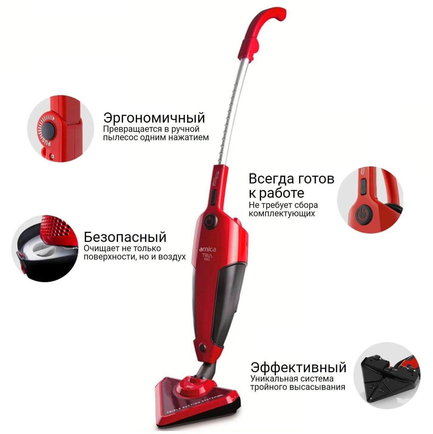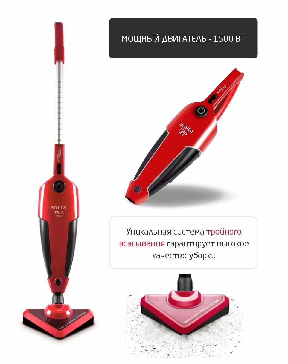 - Arnica Tria Pro: компактный вертикальный пылесос