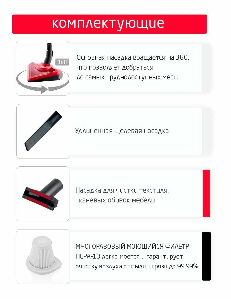 | Тип пылесоса | вертикальный/ручной |