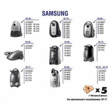 | Соответствие | SAMSUNG тип ориг. пылесборника VP77 |