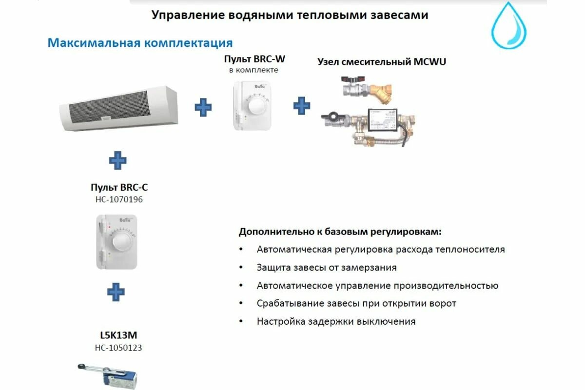 Новый электронный пульт Ballu (Баллу) специально разработан для управления режимами работы водяных тепловых завес. С помощью пульта управления регулируется температурный режим водяной завесы для поддержания заданной температуры. Как только температура достигает заданной величины, автоматика начнет отслеживать текущее состояние и восстанавливать при необходимости эту температуру. Это способствует росту экономичности водяной завесы, уменьшается шум и происходит эффективное распределение потока воздуха. Электронное устройство контролирует положение дверей для включения и выключения завесы.
