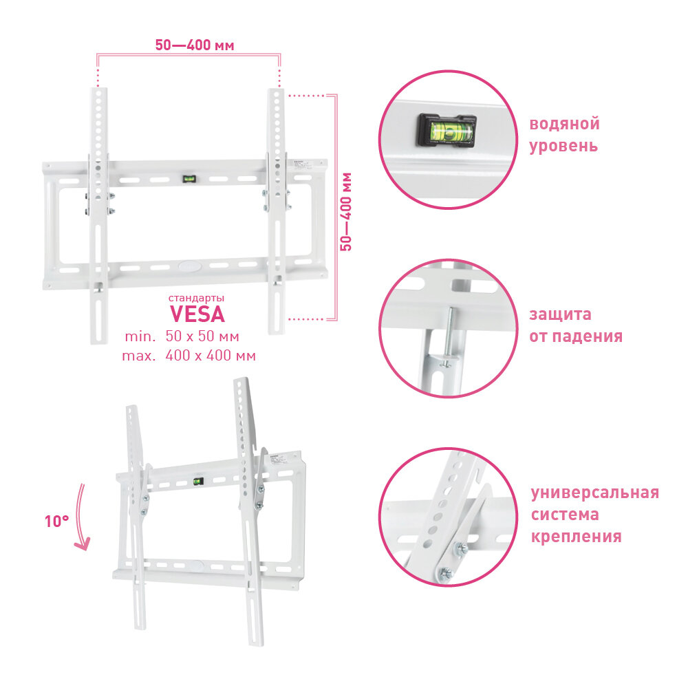 Настенное крепление для телевизоров с диагональю от 22" до 65" и весом не более 50 кг