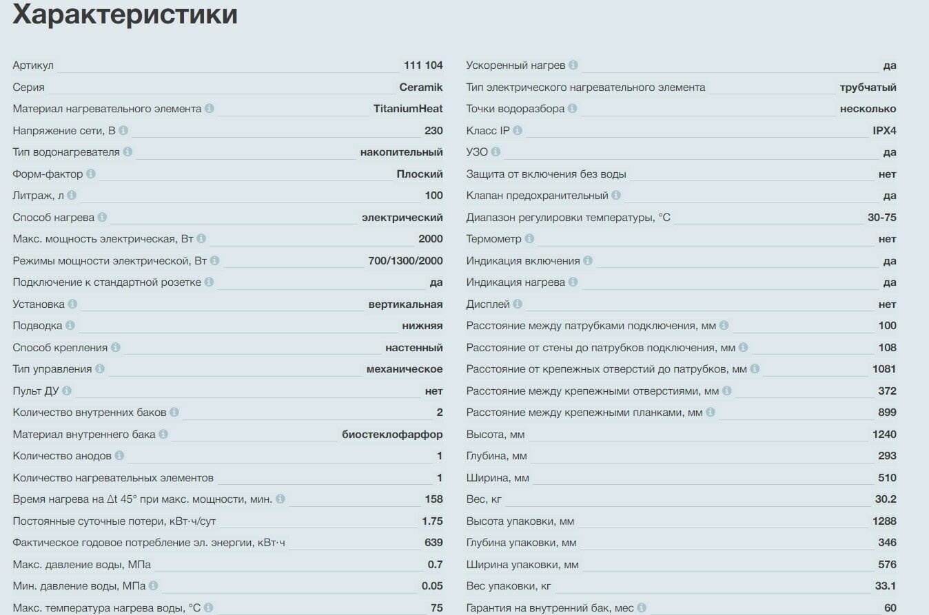 | Защитные функции | защита от избыточного давления, предохранительный клапан, магниевый анод, УЗО, IPX4 |