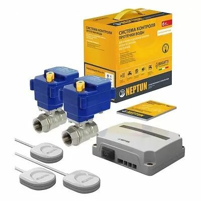 Neptun (Нептун) это система протечки воды, имеющая оптимальную комплектацию, состоящую из трех датчиков, модуля управления и двух кранов. Срабатывает система моментально не более, чем за 2 секунды. Ее рекомендуется устанавливать на этапе ремонта санузла или кухни. Это позволит избежать аварийной ситуации в момент, когда дома никого нет или в тех местах, где заметить протечку сразу не получится.